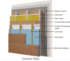 ① The wall is filled with glass fiber cotton, which has good thermal insulation, heat insulation and sound insulation performance;